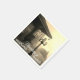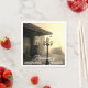 Paper party napkins with image of an old train station a train pulling in for a scheduled stop. Vintage design and quote by Aristotle.