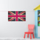 Ein illustriertes Grafikdesign einer Old Union Jack Flag in Rosa und Weiß mit dunkelblauer Hintergrundfarbe, mit weißem Herzen für alle zazzle Produkte geeignet.