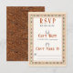 Old West Frontier Wedding RSVP Reply Card features an old west style frame on the front of the RSVP Card and is ready for your own customized RSVP information. The beautiful warm bronze and copper colors and faux tooled leather back is reminiscent of the old west design style that adds to old west romance. This RSVP is a part of our beautiful Old West Frontier themed Wedding Collection. Check out the coordinating stationery, invitation, detail cards and matching themed envelopes to complete your Old West Frontier Western themed wedding.