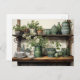 Old Wood Kitchen Shelf Grün Weiße Geschirr Postkarte