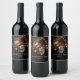 Old World Dark Floral Bouquet mit Monogram Square Weinetikett