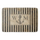 Dieses nautische Monogramm-Bad verfügt über einen schwarz-beige gestreiften Hintergrund mit einem schwarzen Anker in der Mitte und einem Weltkarte-Overlay. Personalisieren Sie das Monogramm mit Ihren eigenen Initialen. Entworfen von dem weltbekannten Künstler Tim Coffey.