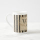Die Tasse der nautischen Monogramm-Keramik weist einen schwarz-beige gestreiften Hintergrund mit einem schwarzen Anker in der Mitte und einem Weltkarte-Overlay auf. Personalisieren Sie das Monogramm mit Ihren eigenen Initialen. Entworfen von dem weltbekannten Künstler Tim Coffey.