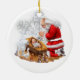 Old World Santa erschossen, mit einem Weihnachtsbaum und Geschenk ist, dass auf einer Keramik ORNAMENT.