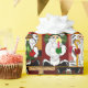 Das grafische Design bietet multikulturelle Santas aus der ganzen Welt, die verschiedene Geschenke halten und verschiedene Rot-, Bordeaux- und Brauntöne tragen. Helle Farben machen aus Ihrem Urlaub ein dynamisches Paket.