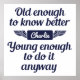 "Alt genug, um es besser zu wissen, aber jung genug, es trotzdem zu tun". Sehen Sie in meinem Laden für weitere Artikel mit diesem Design.
