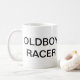 Eine Tasse mit einem Druck einer Ford-Fiestas XR2 auf einer Seite und der Legende "OLDBOY RACER" auf der anderen. Das Bild ist eine Wiedergabe einer Malerei von SIDFox "moderne Klassiker-Sammlung".