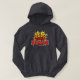 Olé Mis Huevos zeigt zwei harte Cartoon-Eier mit Bandanas und Kappen als Rockband. Einer gibt Daumen hoch, der andere hat die Arme verschränkt im Gangster-Stil. Großartig für Fans von lustigen Eier-Witzen und spanischem Wortspiel!