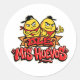 Olé Mis Huevos zeigt zwei harte Cartoon-Eier mit Bandanas und Kappen als Rockband. Eines mit erhobenem Daumen, das andere mit verschränkten Armen im Gangster-Stil. Großartig für Fans von lustigen Eier-Witzen und spanischem Wortspiel!