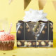 Ein klares Martini-Glas hält einen mit drei grünen Oliven geschmückten Cocktail auf einem Set mit Spieß vor einem warmen Licht.