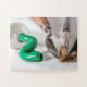Ein Puzzle mit dem fotografischen Bild eines Röhrchens grüner Ölfarbe neben einigen Werkzeugen des Handwerks, wie zum Beispiel Pinseln auf der Leinwand der weißen Kunst. Dieses Rätsel ist anpassbar, sodass Sie Text hinzufügen können oder sogar wählen können, wie viele Teile Sie das Rätsel gewollt haben, um so in der Lage zu sein, Ihren eigenen Schwierigkeitsstandard Set.
