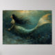 Eine schöne Meerjungfrau mit sanft irisierender Waage und tiefschwarzem Haar.