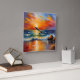 Ölgemälde mit orangefarbenem Sonnenuntergang über Quadratische Wanduhr
