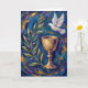 This meaningful Easter card features a richly detailed painting of a golden chalice beside an olive branch heavy with fruit and a pure white dove poised in gentle stillness. The imagery quietly weaves together sacrifice, peace, and overflowing grace, inviting the sender to share not just a greeting, but the deep mystery of resurrection hope. Inside, a lyrical message traces the journey from the seeming silence of the grave to the triumphant rising of the Lamb, calling the reader to lift their heart and eyes to the One who brings new life from death. It is the perfect card for anyone who longs to send a thoughtful, spiritually rich Easter blessing that lingers in both mind and soul.