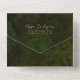 Dieses elegante, moderne und einladende Hotel empfängt Sie mit einem zauberhaften und mit Imitaten vergoldeten Glitzer geschmückten Hintergrund mit einem zauberhaften, grünen Aquarell. Der anpassbare Text kombiniert goldfarbene moderne Handschrift, Copperplate und kursiven Schriftart. Die Rücksendeadresse erscheint auf der Außentafel und auf der Rückseite der abnehmbaren RSVP-Karte in goldfarbenem Text auf einem olivgrünem Hintergrund.
