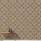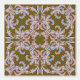 Soft pink and blue scrollwork on an earthy olive green base for a refined classic feel.