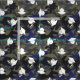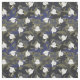 Camouflage Abschluss Stoff in den Feldern von blau, kohle, olivgrün und ein Muster von weißen Graduierungskappen.