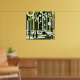 Dieses faszinierende Pop-Kunstdesign besticht durch einen Pinguin, der stehend inmitten eines lebendigen, geometrisch geformten Waldes und kontrastierender, gesättigter Farben ist. Das einfarbige Farbschema des Pinguins steht im Kontrast zur spielerischen und visuell auffälligen Komposition des Waldes. Überall werden flache Farben und vereinfachte Formulare verwendet, wodurch eine ausgeprägte Pop-Kunst-Ästhetik entsteht. Dieses einzigartige und auffällige Design wäre ein Gesprächsstarter an jedem Ort.