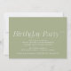 Moderne und einfache Einladungen für Geburtstagsfeiern, die sich in jedem Alter ändern lassen. Boho Olivgrün Farbe mit einem pinstripes Muster auf der Rückseite.
