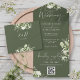 Olive Green Floral QR Code Monogram Wedding All In One Einladung