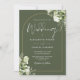 Diese elegante goldfarbene botanische grüne Blumenzwiebeleinladung kann mit Ihren Informationen in schicke Typografie personalisiert werden, mit Ihren Angaben zur Hochzeitswebsite und Ihrem QR-Code auf der Rückseite. Entwickelt von Thisisnotme©