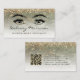 This glamorous modern business card features a sketch of two eyes with elegantly arched eyebrows in black on a background image of olive green marble. A sprinkling of gold faux glitter decorates the top edge of the card. Personalize it with your name in black handwriting-style script and your title in black sans serif font. Add your contact information on the back, and enter your URL to generate a QR code.