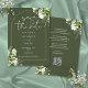 Dieser elegante olivgrüne botanische grüne Blumengoldbogen rette-the-date Einladung kann mit Ihren Informationen in schicken modernen Typografie mit Ihrem Hochzeitswebsite QR-Code und Details auf der Rückseite personalisiert werden. Entwickelt von Thisisnotme©