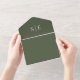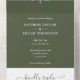 Diese schicke, minimalistische All-in-One-Hochzeitseinladung kann mit Ihren Monogramm-Initialen und Hochzeitstag-Informationen auf einem olivgrünen Hintergrund personalisiert werden. Die Einladung beinhaltet ein perforiertes UAWG mit Ihrem Hochzeitswebsite QR Code und Details. Entwickelt von Thisisnotme©