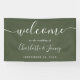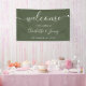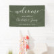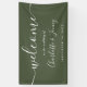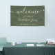 Diese schicke olivgrüne Signatur Skript Hochzeit Begrüßungsbanner Karte kann mit Ihren Namen und besonderen Datum personalisiert werden. Entwickelt von Thisisnotme©