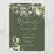 Olive Green String Lights Floral QR Code Hochzeit Einladung