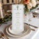 Designed with a vertical layout for easy reading, this menu card clearly presents starters, main courses, desserts, and beverage selections. The ornate botanical motif adds a sophisticated decorative touch while maintaining a clean, balanced composition, ideal for formal dinners, château receptions, garden weddings, or elegant city celebrations.