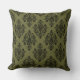 Olive Green und Black Damask Muster Kissen