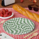 Olive Green & White Warted Checkered Pattern Pappteller