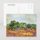 Eine Kunstpostkarte mit dem postimpressionistischen Gemälde Olive Grove - Pale Blue Sky (1889) von Vincent van Gogh (1853-1890). Eine Darstellung von Olivenbäumen mit Seurat-ähnlichen Farbstrichen und einem blass blauen Himmel.