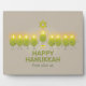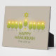 Eine Gruppe von lustigen Oliven treffen sich für ein Foto op und bilden eine Menorah, um einen Happy Hanukkah Gruß zu senden.
