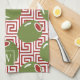 Rustic Olive scatter print on a bold Mediterranean Greek Key seamless pattern for the kitchen, grill or bar.