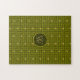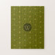 Ein klassisches Hahnentrittmuster-Design in den nicht so klassischen Farbtönen von Olivengrün schafft ein lustiges und aktualisiertes Muster mit einem endgültigen Akzent eines metallisch-ähnlichen Goldes gemischt, um ein Design zu schaffen, das wirklich Pop wird. Passen Sie das Monogramm auf diesem Puzzle mit Ihrem Initial an, um es einzigartig zu Ihrem eigenen zu machen.