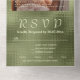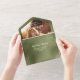 Mit diesem schicken Olive and Sage Shimmer Background Themed Wedding Einladung mit modernem Komfort laden Sie Ihre Lieben ein. Dieses einladende Hochzeitsschema mit Olive- und Sage-Hintergrund und einem schimmernden, texturierten Hintergrund. Passen Sie den Text, das Foto an, fügen Sie Ihre Website und E-Mail für eine einfache, elegante All-in-One-Hochzeitseinladung ein. Perfekt für das stilbewusste Paar, das ein einzigartiges und funktionales Einladungs-Design sucht.
