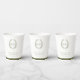 Olive-grüne weiße Blatt gezeichnet Blatt monogramm Hochzeitspapier Tassen. Personalisieren Sie mit Ihren Initialnamen und dem Hochzeitstermin. Ideal für Drinks im Freien oder nach der Hochzeit. Original Hand zeichn und Design von Sarah Trett für www.mylittleedenweddings.com