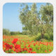 Olivenbaum in Mohnfeldkleber Quadratischer Aufkleber