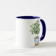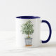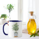Kaffeemaschine mit Aquarellbildern eines Olivenbaumes mit üppigen Olivenzweigen, die über das ganze Bild verteilt sind. Der Baum ist Set in einem blau-weißen Planer. Auf beiden Seiten gedrucktes Bild. Zusätzliche Größen und Felgen- und Griffgrößen sind erhältlich.