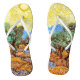 Dieses wunderschöne Paar Olivenbäume (1889) Unisex Flip Flops 🩴 eine Landschaft, die von dem berühmten niederländischen Post-Impressionisten Maler Vincent van Gogh unter einem strahlend gelben Sonnenhimmel geschaffen wurde. Als Vincent van Gogh 1889 Saint-Rémy-de-Provence besuchte, malte er mindestens 15 Olivenbäume. Er lebte dort von Mai 1889 bis Mai 1890 auf eigene Anfrage. Er malte die Asylgärten und die benachbarten Weizenfelder, Zypressen und Olivenbäume, als ihm der Zugang zur Außenwelt gewährt wurde. Durch seine Verbindungen zur Natur fand Van Gogh Komfort und Frieden. Trotz der emotionalen und physischen Herausforderungen, vor denen er stand, werden seine Olivenbaummalereien aus dem Jahr 1889 als einige seiner beststen angesehen. Mit diesen edlen Kunstsocken, die Vincent Van Gogh's Olive Trees (1889) zeigen, können Sie sofort eine modische, künstlerische Aussage machen. Nutzen Sie die hervorragende Qualität dieser Sandalen / Flip Flops 🩴 sofort! Stilvollere Flip Flops finden Sie unter => zazzle.com/store/famous_art_paradise