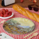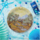 Olivenbäume mit gelbem Himmel und Sonne Pappteller