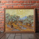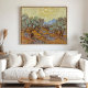 Das ist eine von fünfzehn Leinwand Olivenbäumen, die von Juni bis Dezember 1889 von van Gogh ausgeführt wurden. Anfang des Jahres hatte er sich im Asyl von St. Paul, in der Stadt St. Rémy in Südfrankreich, wo er seine tiefgründigsten Werke erschaffen würde, verinnerlicht. Die lebhaften Orangen und Gelben deuten darauf hin, dass das Bild auf die Herbstmonate datiert. Van Gogh verließ St-Rémy im Mai 1890 und zog nach Auvers, in der Nähe von Paris, wo er bis zu seinem Selbstmord im Juli fortfuhr zu malen.