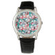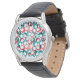 Die Herren-Uhr hat Mitte des Jahrhunderts ein modernes Design von Kreisen in blau, aquamarin, rosa, lila und beerig mit weißen Ovalen innen.