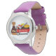 Kinderuhr aus Edelstahluhr mit lila Lederarmband