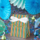 Olivgrün, aquamarin und orange gestreifte Greifbox mit Krawatte. Perfekt für alle Geschenkthemen; einfach/minimalistisch bis maximalistisch, je nach zusätzlichen Verzierungen.