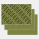 Geschenkverpackungspapier Set von 3 Blättern mit 1 Blatt mit anpassbarer Vorlage Happy Birthday Wiederholung Muster Typografie und alle Blätter gedruckt mit Olive Green Solid Color Hintergrund Illustration und ausgewählte Produkte Sammlung von TheFabricSeal Print on Demand Shop Zazzle.com #ZazzleMade https://www.zazzle.com/store/thefabricseal Unser schön bedrucktes Packpapier kommt in einem Set von drei bequem vorgeschnittenen Blättern. Ideal für Geschenkpackungen, Gastgeschenke oder um Ihr nächstes kreatives Heimwerkerprojekt wirklich herausragend zu machen! Auch unsere passenden Grußkarten, Postkarten, Taschentücher, Geschenktaschen, Geschenkbänder und Geschenktafeln können Sie hier einkaufen. Unsere ständig wachsende große Auswahl an großartig aussehenden, soliden Farben im Shop werden zu den besten Verkäufern, vor allem mit dem anpassbaren Zugriff auf Produkte, die mit Zazzle.com verbunden sind. Die Farbe Olive ist ein dunkles Grün mit gelben und braunen Farbtönen. Die Farbe Oliven ist vielseitig neben neutralen Farben wie Beige, Khaki und Maron. Diese natürlichen Farbtöne bieten eine gedämpfte, aber raffinierte Palette, die in Mode, Dekoration und Design verwendet wird. Olivengrün ist ein gedämpfter, erdiger grüner Schatten, der sich gelb anlehnt und oft mit Ruhe, Harmonie und Natur assoziiert wird, weil es der Farbe von Oliven-Blätter und Obst ähnelt. Karo in unsere 400 + großartige Originale Designs und Produktkollektionen aus unserem Flagship Select Products Store und dem Neckties Store. All dies inklusive Anpassungsoptionen. Personalisieren Sie mit Ihrem eigenen Design, Monogramm, Name, Muster, Foto, Zitat oder Slogan. Vielen Dank für Ihre Auswahl und den Einkauf bei uns. Wir freuen uns über Ihre Unterstützung. Genießen Sie Ihr Einkaufserlebnis. Bestelle noch heute.