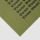 Geschenk Geschenktücher Gewebe Papier mit individualisierbaren Vorlage Ihr Text Hier Wiederholen Muster Typografie gedruckt mit Olive Green Solid Color Hintergrund Illustration und Auswahl Produkte Sammlung von TheFabricSeal Print on Demand Shop unter Zazzle.com #ZazzleMade https://www.zazzle.com/store/thefabricseal Wenn Sie die Mühe, die perfekte Gegenwart zu finden, stellen Sie sicher, dass sie die perfekte Präsentation hat. Geben Sie Ihren Geschenken eine persönliche Touch mit maßgeschneidertem Papiertaschentuch. Geschenke geben gerade ging von Spaß zu super Spaß! Auch unsere passenden Grußkarten, Postkarten, Taschentücher, Geschenktaschen, Geschenkbänder und Geschenktafeln können Sie hier einkaufen. Unsere ständig wachsende große Auswahl an großartig aussehenden, soliden Farben im Shop werden zu den besten Verkäufern, vor allem mit dem anpassbaren Zugriff auf Produkte, die mit Zazzle.com verbunden sind. Die Farbe Olive ist ein dunkles Grün mit gelben und braunen Farbtönen. Die Farbe Oliven ist vielseitig neben neutralen Farben wie Beige, Khaki und Maron. Diese natürlichen Farbtöne bieten eine gedämpfte, aber raffinierte Palette, die in Mode, Dekoration und Design verwendet wird. Olivengrün ist ein gedämpfter, erdiger grüner Schatten, der sich gelb anlehnt und oft mit Ruhe, Harmonie und Natur assoziiert wird, weil es der Farbe von Oliven-Blätter und Obst ähnelt. Karo in unsere 400 + großartige Originale Designs und Produktkollektionen aus unserem Flagship Select Products Store und dem Neckties Store. All dies inklusive Anpassungsoptionen. Personalisieren Sie mit Ihrem eigenen Design, Monogramm, Name, Muster, Foto, Zitat oder Slogan. Vielen Dank für Ihre Auswahl und den Einkauf bei uns. Wir freuen uns über Ihre Unterstützung. Genießen Sie Ihr Einkaufserlebnis. Bestelle noch heute.