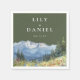 Diese eleganten olivgrünen Aquarell-Berg-Wildblumen-Hochzeitspapierservietten können mit Ihren Informationen in moderner Typografie personalisiert werden. Entworfen von Thisisnotme©